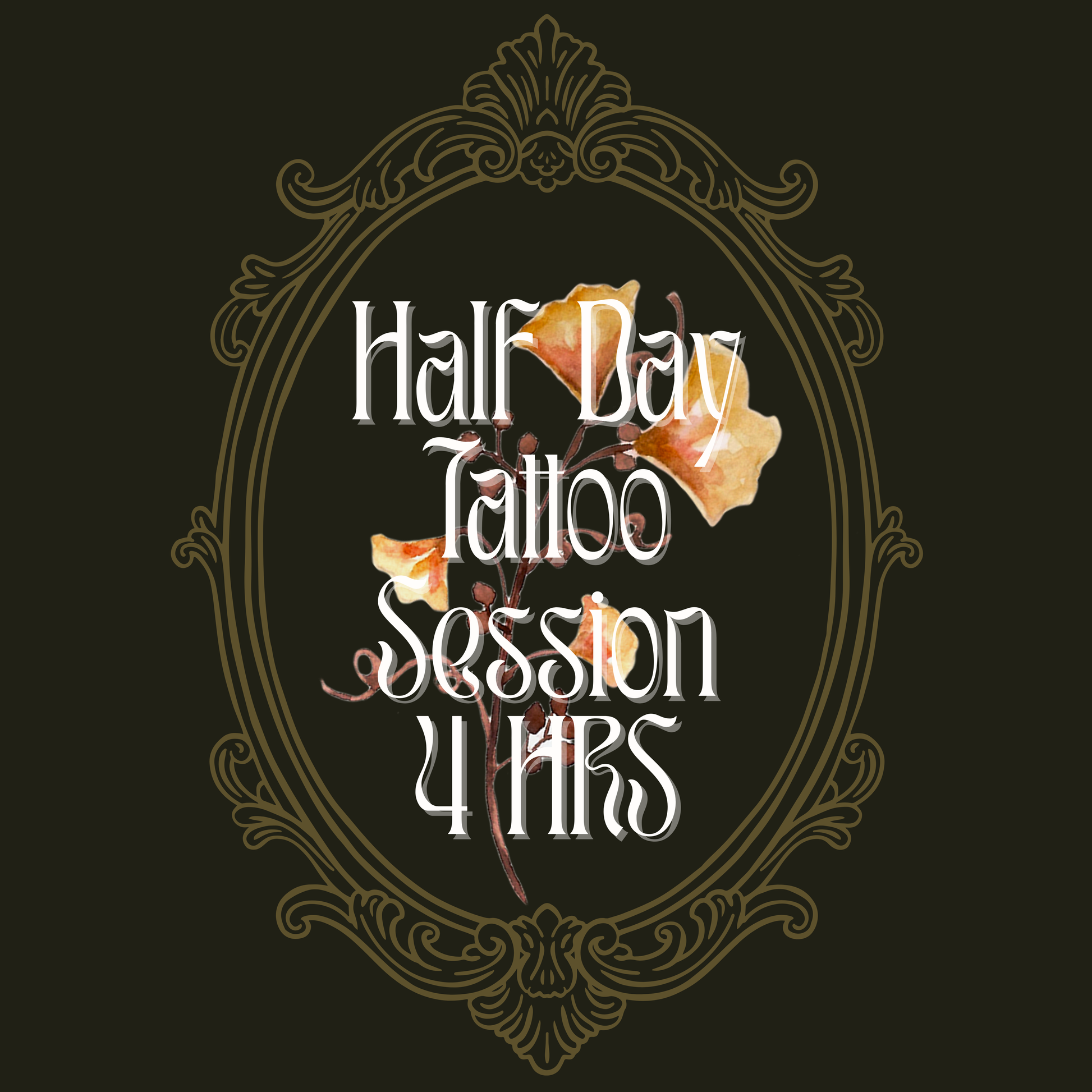 Half day tattoo session is 4 hours. great for medium color and more detailed tattoos. You can either pay in full or pay the deposit. The remaining amount will be due at the start of your tattoo session.